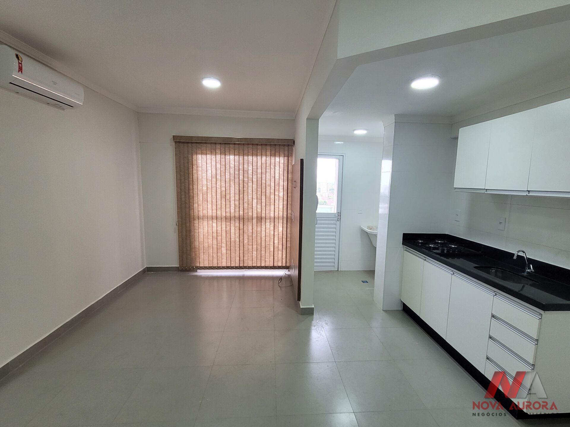 O apartamento possui piso porcelanato em todos ambientes, cozinha planejada rica em armários e com cooktop instalado, quarto com armário embutido , ar condicionado split na sala e banheiro com box de vidro.