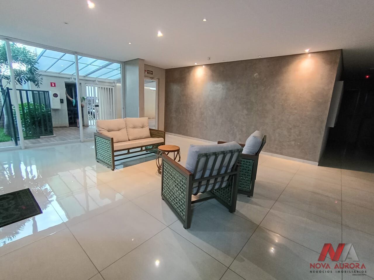 A cozinha conta com fogão de indução, armários planejados e porta de vidro que separa a lavanderia, trazendo praticidade e organização ao dia a dia. A sacada foi fechada em vidro e integrada à sala, que já possui painel de TV, rack, iluminação em LED e ar-condicionado, proporcionando um ambiente moderno e acolhedor. O banheiro social está completo, com box em blindex, gabinete e espelho. Todo o imóvel é revestido com piso em porcelanato, garantindo sofisticação e fácil manutenção. Outro diferencial é a face nascente, com agradável sol da manhã, que favorece a iluminação natural e o conforto térmico.