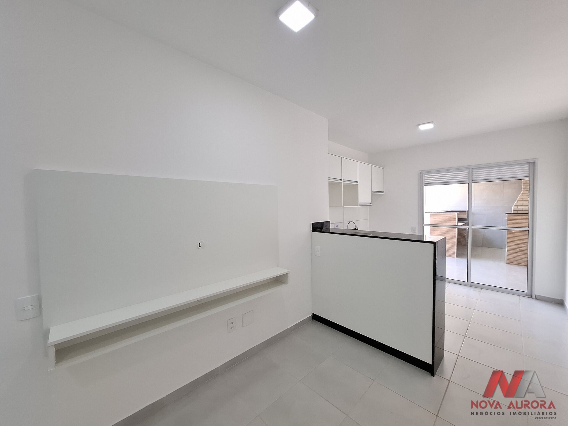 O imóvel dispõe de uma sala para dois ambientes, estar e jantar, com painel de TV, proporcionando um espaço aconchegante e funcional. A cozinha é no estilo americana, equipada com móveis planejados, garantindo praticidade no dia a dia.