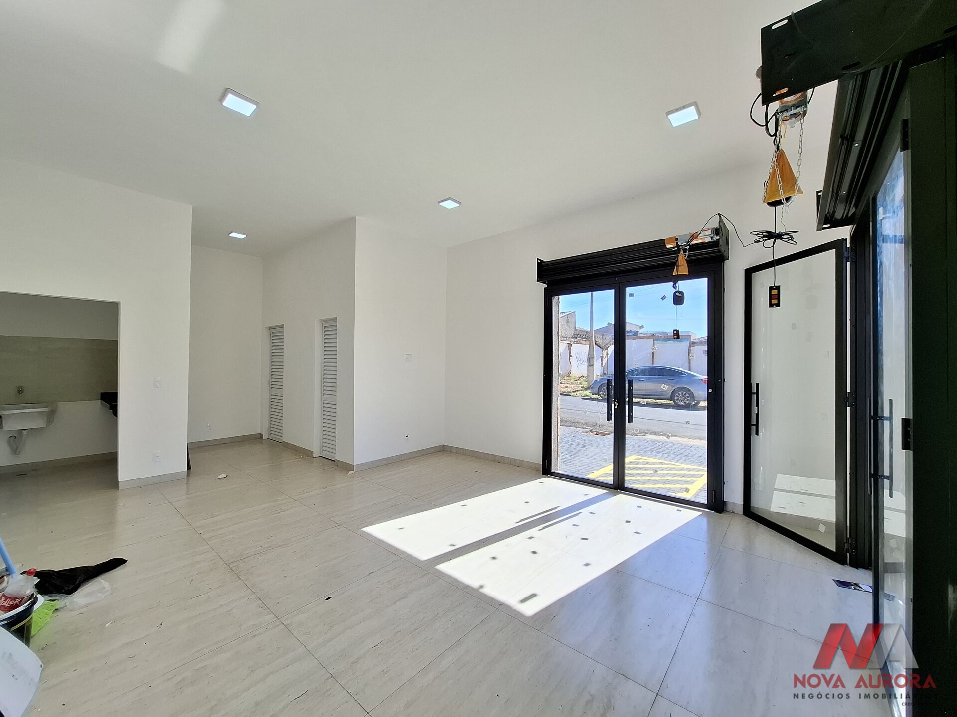 A sala dispõe ainda de porta de aço com acionamento por controle remoto, oferecendo mais segurança e praticidade no acesso.