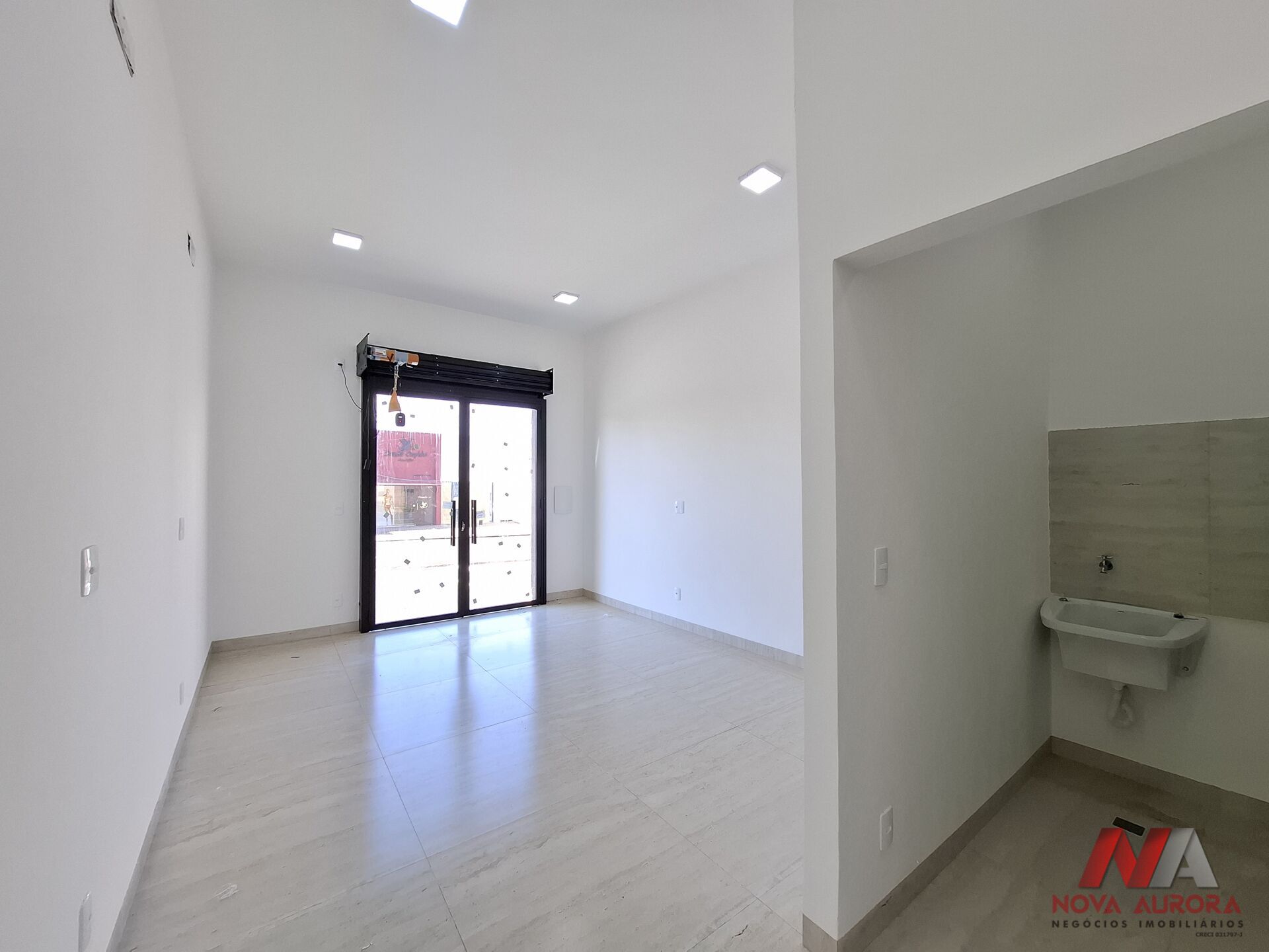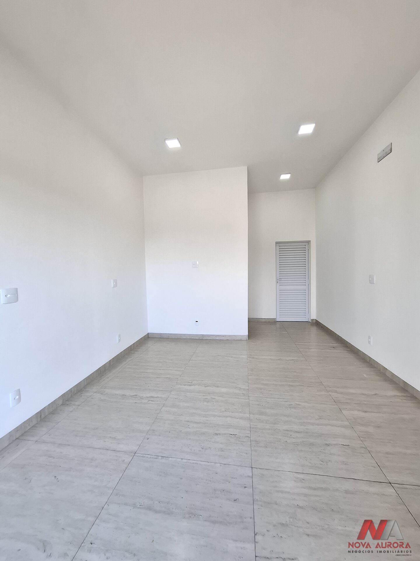 A sala dispõe ainda de porta de aço com acionamento por controle remoto, oferecendo mais segurança e praticidade no acesso.
